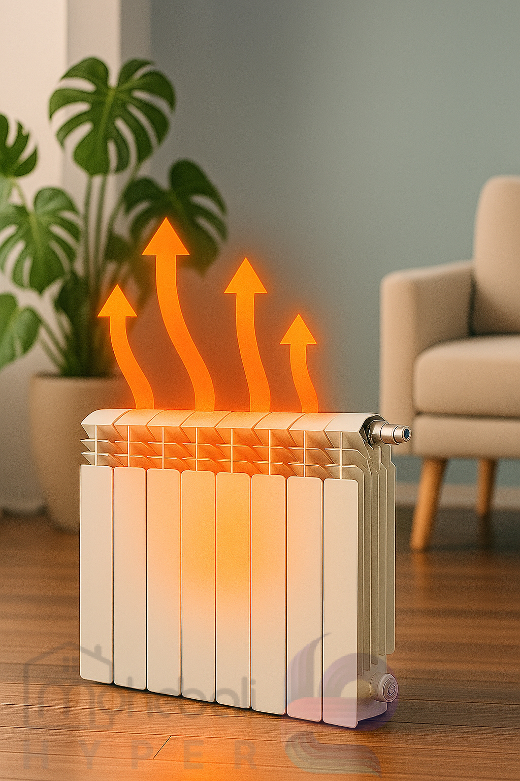عمر طولانی و سادگی عملکرد، از جمله دلایل اصلی ماندگاری رادیاتورهای پره ای در بازار گرمایش است. این سیستمها بر پایه اصول پایه فیزیک، یعنی همرفتی (Convection) و تابش (Radiation)، عمل میکنند. آب گرم ورودی از بویلر یا پکیج، در داخل پرهها جریان مییابد و حرارت خود را به فلز پرهها منتقل میکند. سطح وسیع پرهها باعث میشود که هوای اطراف گرم شده و به سمت بالا حرکت کند (همرفتی)، در حالی که خود رادیاتور نیز مستقیماً گرما را به محیط تابش میکند. این مکانیسم ساده و در عین حال کارآمد، تضمینکننده گرمای یکنواخت و پایداری در فضای داخلی بوده است.