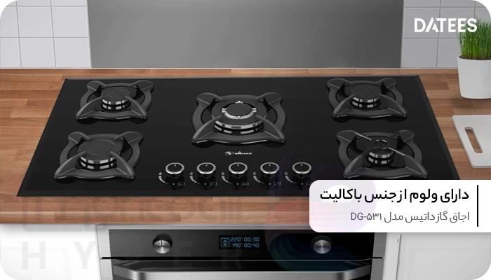 اجاق گاز شیشه ای داتیس مدل DG-531 با طراحی بسیار زیبا و شیک وارد بازار شده تا تجربه جدید و شگفت انگیزی از آشپزی با این اجاق برای شما به ارمغان آورد. این اجاق دارای شیشه سکوریت با ضخامت 8 میلیمتر و مقاوم در برابر ضربه و حداکثر حرارت می باشد تا هیچگونه آسیبی به آن نبیند. گریل های این اجاق دارای چدن لعاب کاری شده و مقاوم در برابر تغییر رنگ و شوک حرارتی است که قابل شستشو در ماشین ظرفشویی و به همان کیفیت اولیه می باشد.